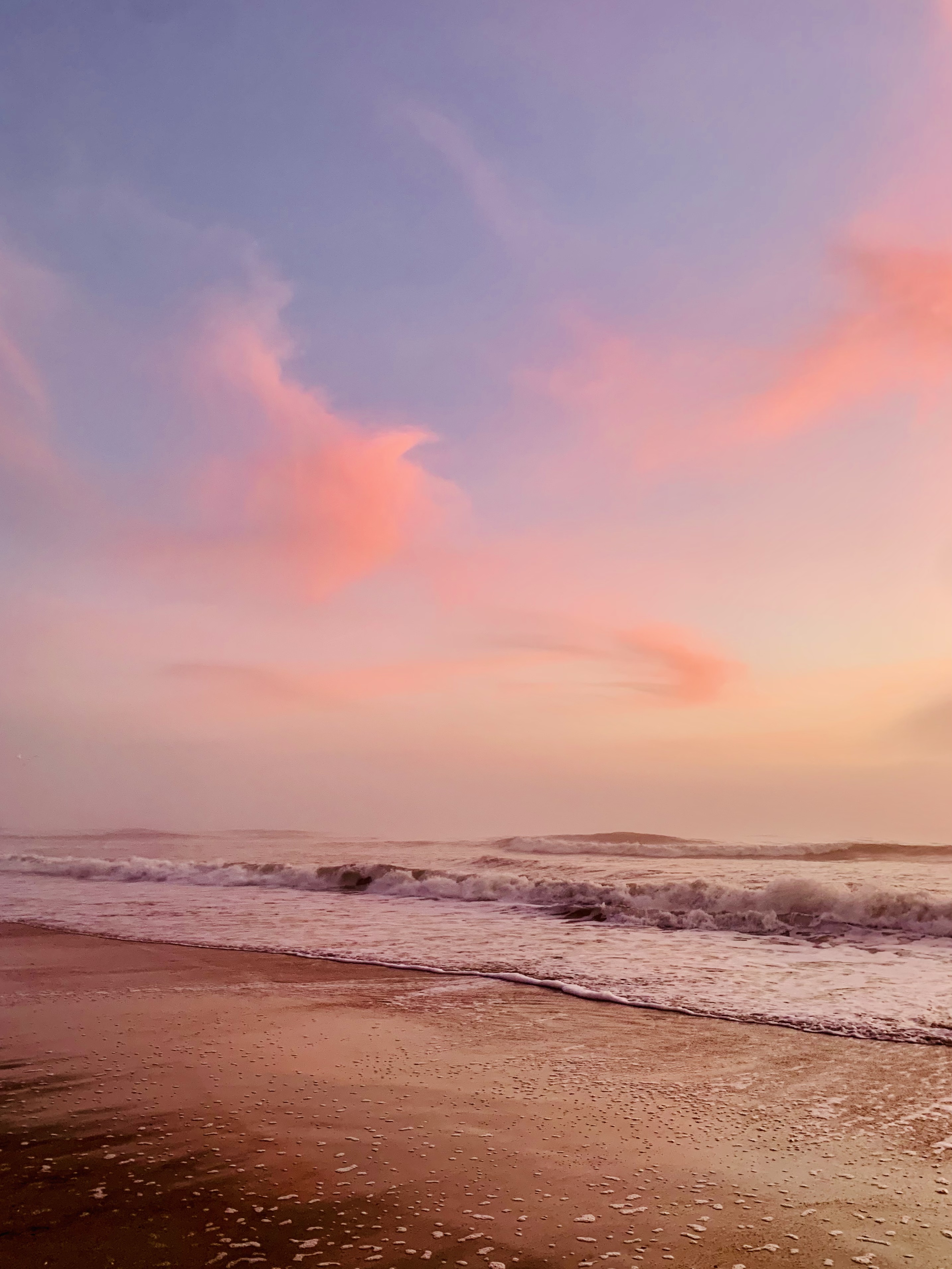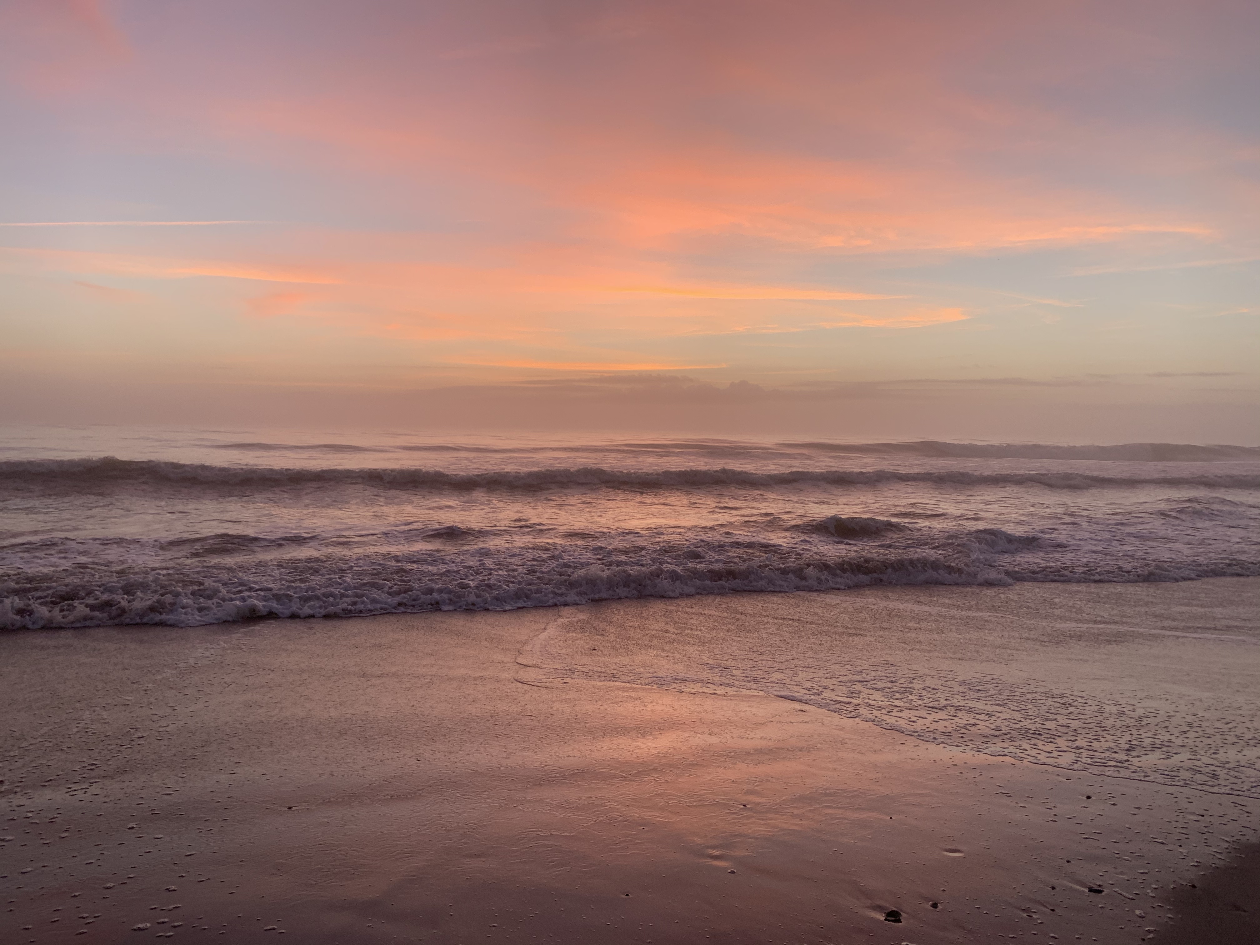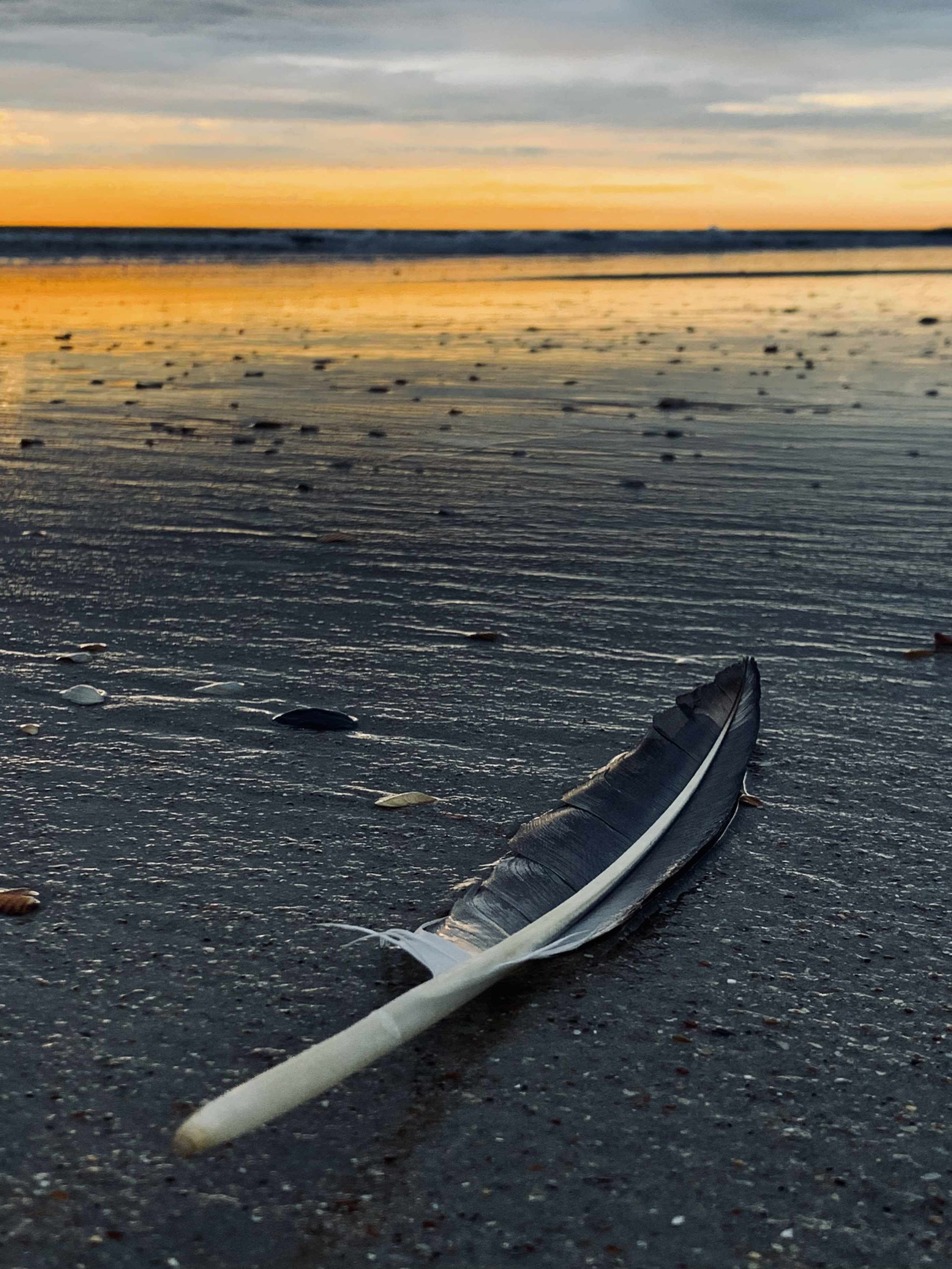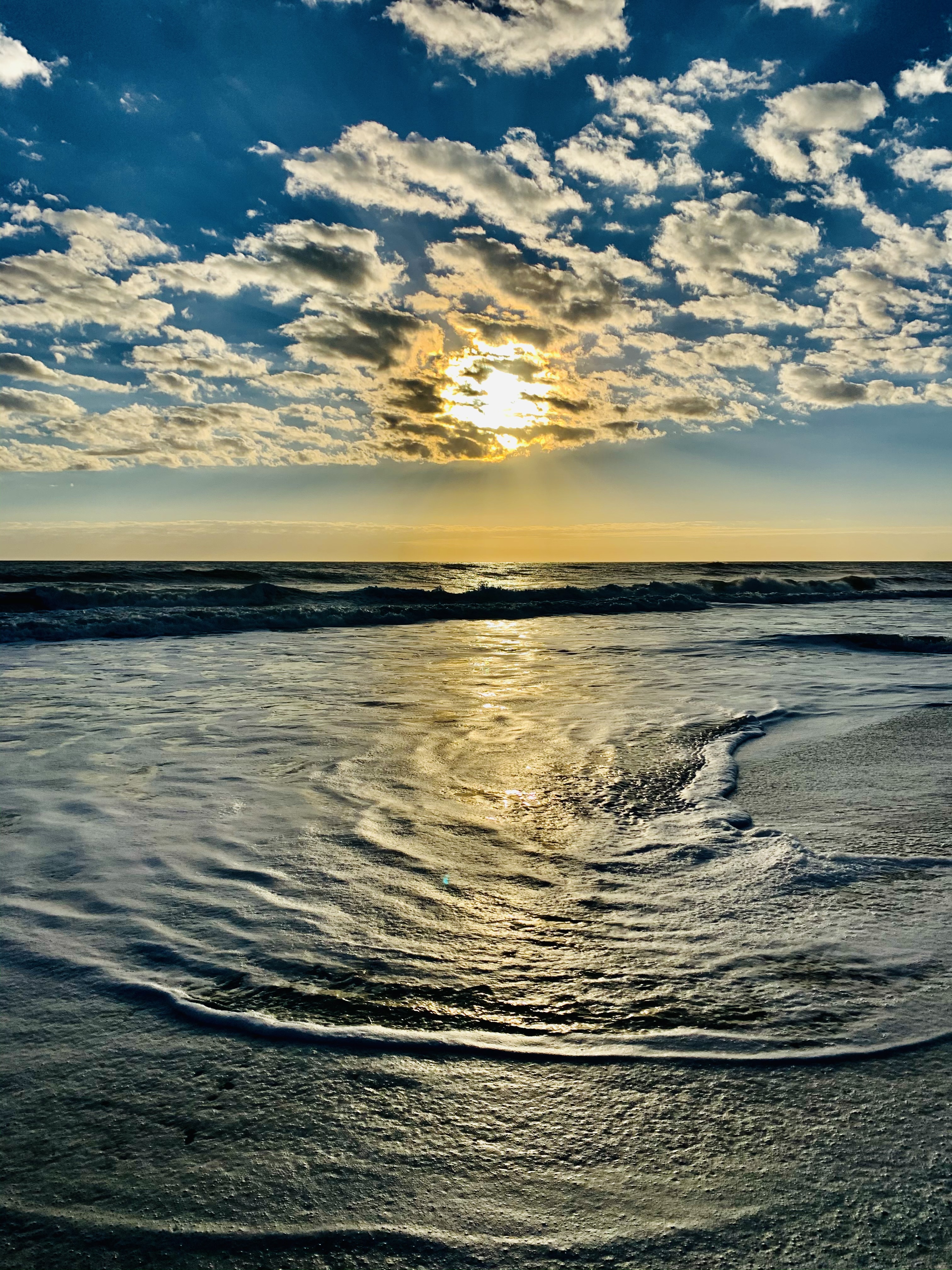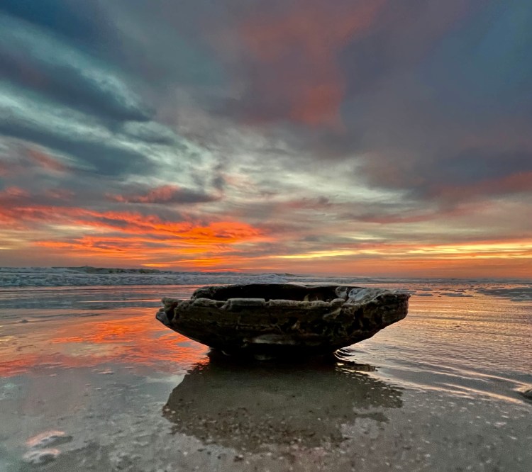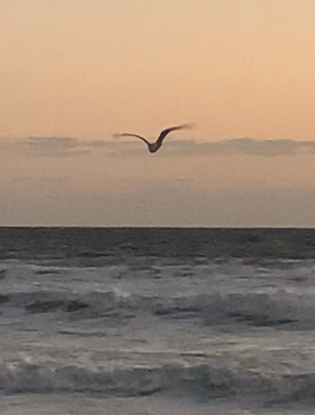 I walk at the sea at sunrise almost daily. The beach and the ocean are constantly changing; every morning is different. Tides and currents carry sand, shells, sea glass, and marine life from one place to another. Winds impact which birds are flying where. Tides and weather alter beaches every day.
