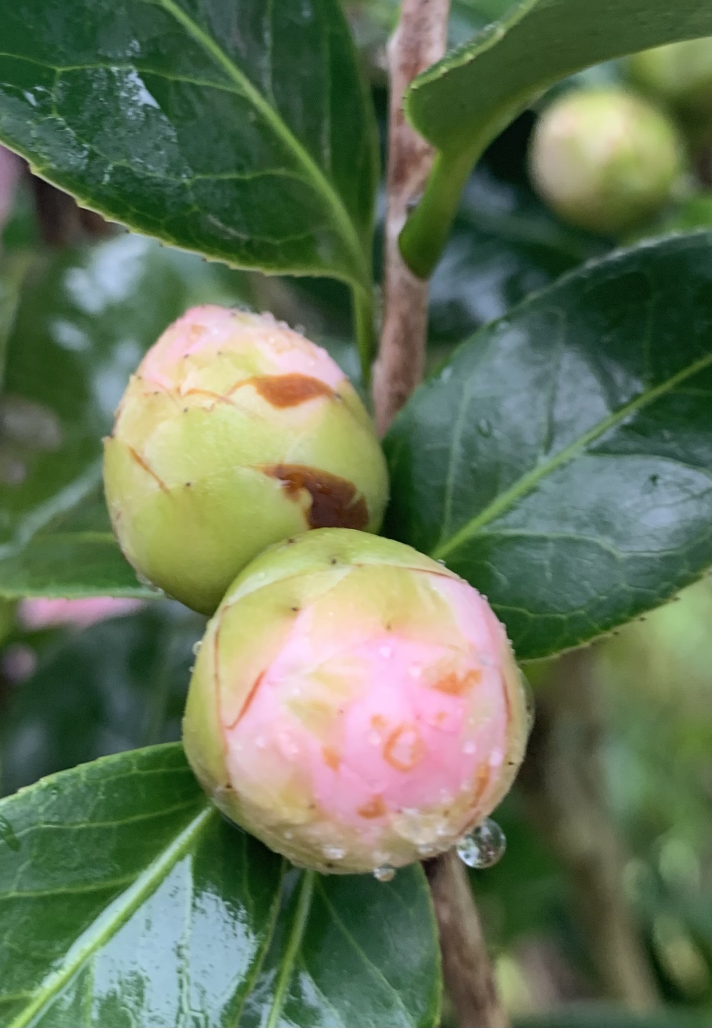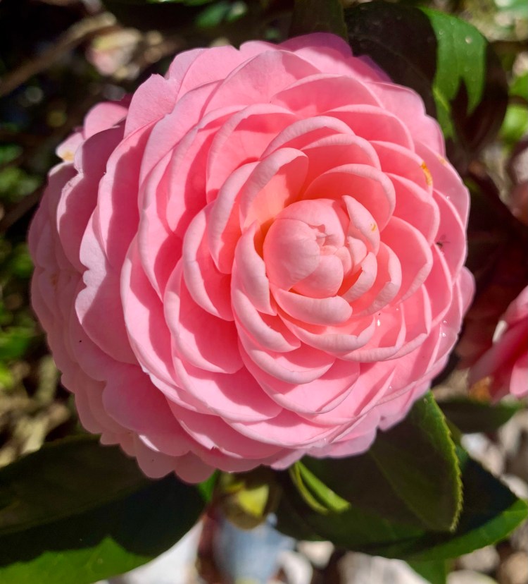 There are over 260 species of camellia. Some camellia will bloom in October, but most flowers will appear in January or February. Mine blossom in February and happily continue blooming through April. Though camellia’s are very popular in the American south, they are native to southeast Asia. Some camellia leaves are grown and harvested for tea.
